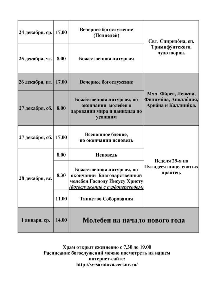 30 ноября 202517 ноября 2025 (по ст.ст.)ВоскресеньеНеделя 25-я по ПятидесятницеИкона Богородицы «Елеоточивая» («Элеовритисса») Мученик Ацискл и мученица Виктория КордувийскиеСвятитель Григорий Чудотворец, епископ НеокесарийскийПреподобный Никон Радонежский, игуменПреподобный Лазарь Константинопольский, иконописец, иеромонахМученик Гоброн (в Крещении Михаил) Кахетинский, князьПреподобный Севастиан Джексонский, архимандритМученик Ацискл КордувийскийМученица Виктория КордувийскаяМк.16:9–20, Еф.4:1–6, Лк.12:16–21, 1Кор.12:7–11, Мф.10:1,5–8, Гал.5:22–6:2, Мф.4:25–5:12Архивы